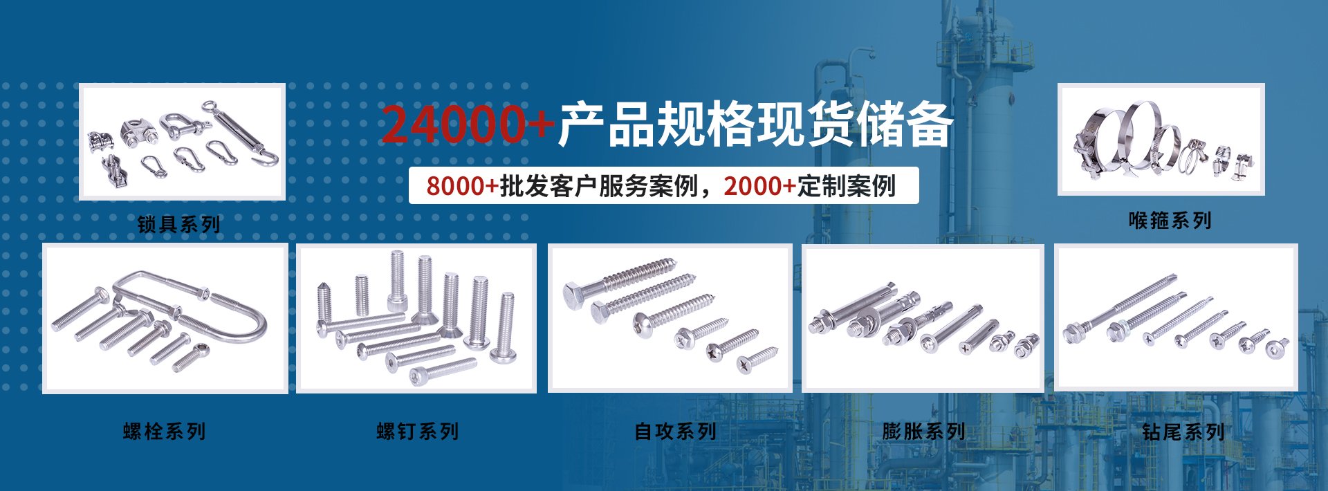 一站式緊固件配套供應(yīng)廠(chǎng)家10年緊固件行業(yè)銷(xiāo)售經(jīng)驗(yàn) · 8000家客戶(hù)共同選擇