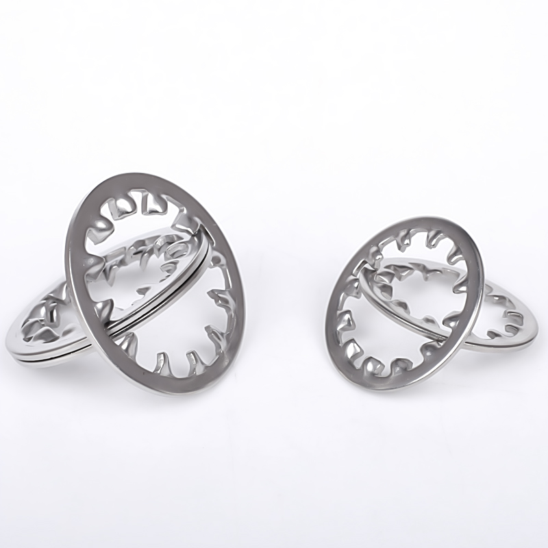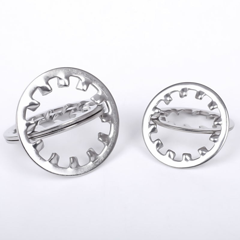 鋸齒鎖緊墊圈是跟螺母配合裝在螺栓上使用的,它的作用類似于彈簧墊,可以起到鎖緊防松的作用。鋸齒鎖緊墊圈分為內(nèi)鋸齒鎖緊墊圈和外鋸齒鎖緊墊圈